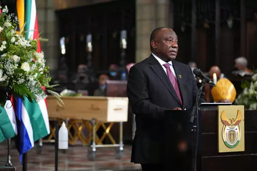 CAPE TOWN, South Africa (AP) — Anglican Archbishop Emeritus Desmond Tutu has been remembered at a state funeral Saturday for his Nobel Peace Prize-earning role in ending South Africa's apartheid regime of racial oppression and for championing the rights of LGBTQ people.