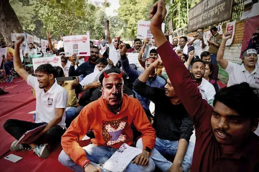 In India, about 200 Amazon warehouse workers and delivery drivers, rallied Friday in New Delhi, some wearing masks of Amazon chief Jeff Bezos, to demand better wages and working conditions. Similar protests were planned in other countries.