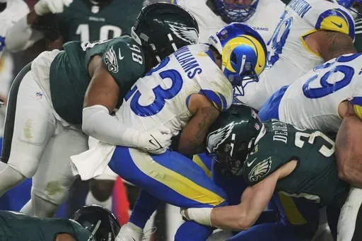Philadelphia's Jalyx Hunt has become a key situational pass rusher the second half of the season and had a sack in the divisional round against the Rams. Will Shipley had a 57-yard run and a forced fumble in kick coverage and Jeremiah Trotter has made key plays on special teams as GM Howie Roseman's draft class has delivered.