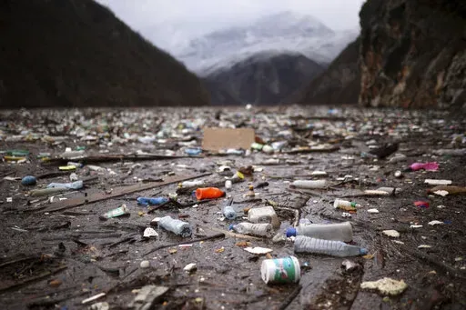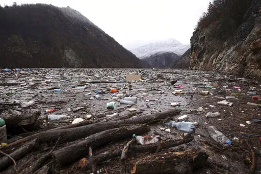 VISEGRAD, Bosnia-Herzegovina (AP) — Tons of waste dumped in poorly regulated riverside landfills or directly into the waterways that flow across three countries end up accumulating behind a trash barrier in the Drina River in eastern Bosnia during the wet weather of winter and early spring.