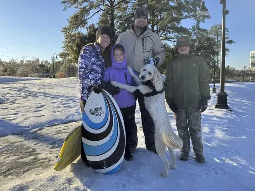 TALLAHASSEE, Fla. (AP) — When the sun rose over the Sunshine State on Wednesday, palm trees were dusted with snow, waves crashed on icy beaches, and overjoyed Floridians grabbed whatever would slide and headed for the closest hill.