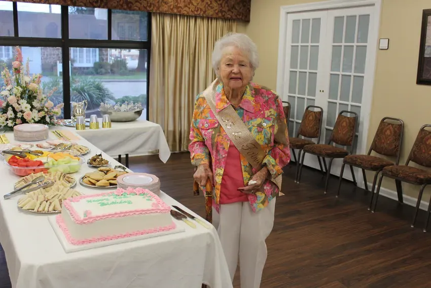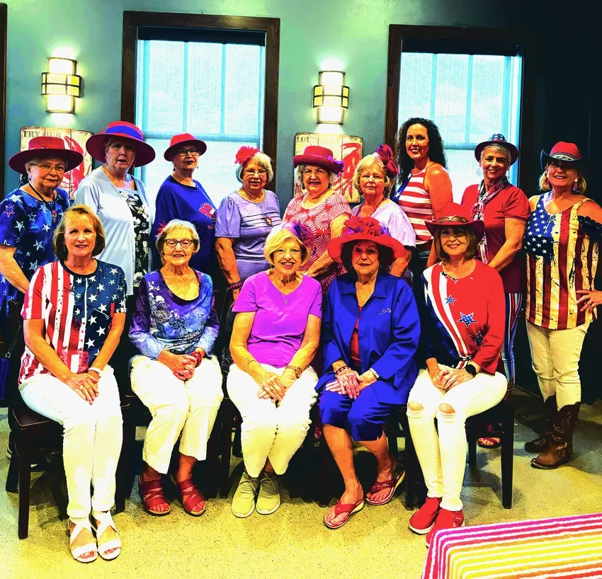 The red hat group celebrated in July at Duke's restaurant in Watson, La., with Loretta Booty as our hostess with a July 4th theme. We had many special prayer requests and other announcements. Frances Schilling voiced our prayer and the blessing for our food.