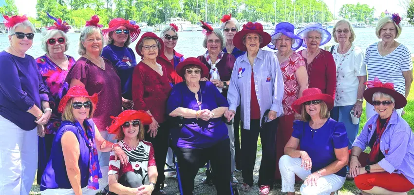 The red hat outing for May, was hosted by Frances Schilling at Morton's Seafood Restaurant in Madisonville. It was a beautiful day on the Tchefuncte river with 19 ladies in attendance. May birthday ladies were Sue Macias and Frances Schilling. The blessing for our food was given by Sue Macias.