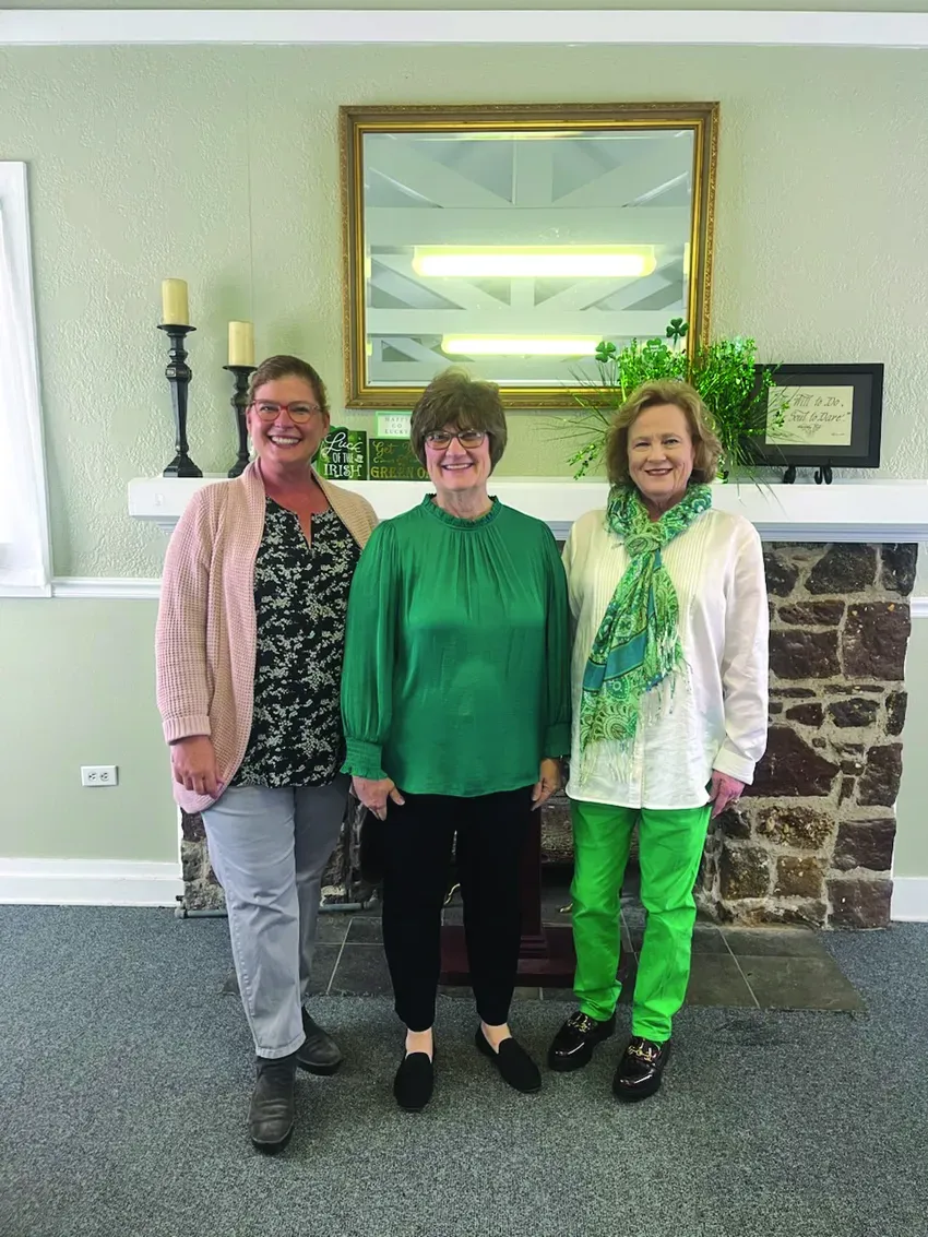 The Magnolia Belles held their March meeting at the home of Joni Brindle. Sharing hostess duties with Joni were Gale Williams, Tra Ladner, and Jeannie Dillon, shown in photo. The Brindle home was decorated with lovely Spring and Easter decor. Members enjoyed a delicious meal of Spring salad, chicken Alfredo pasta, and strawberry cake.