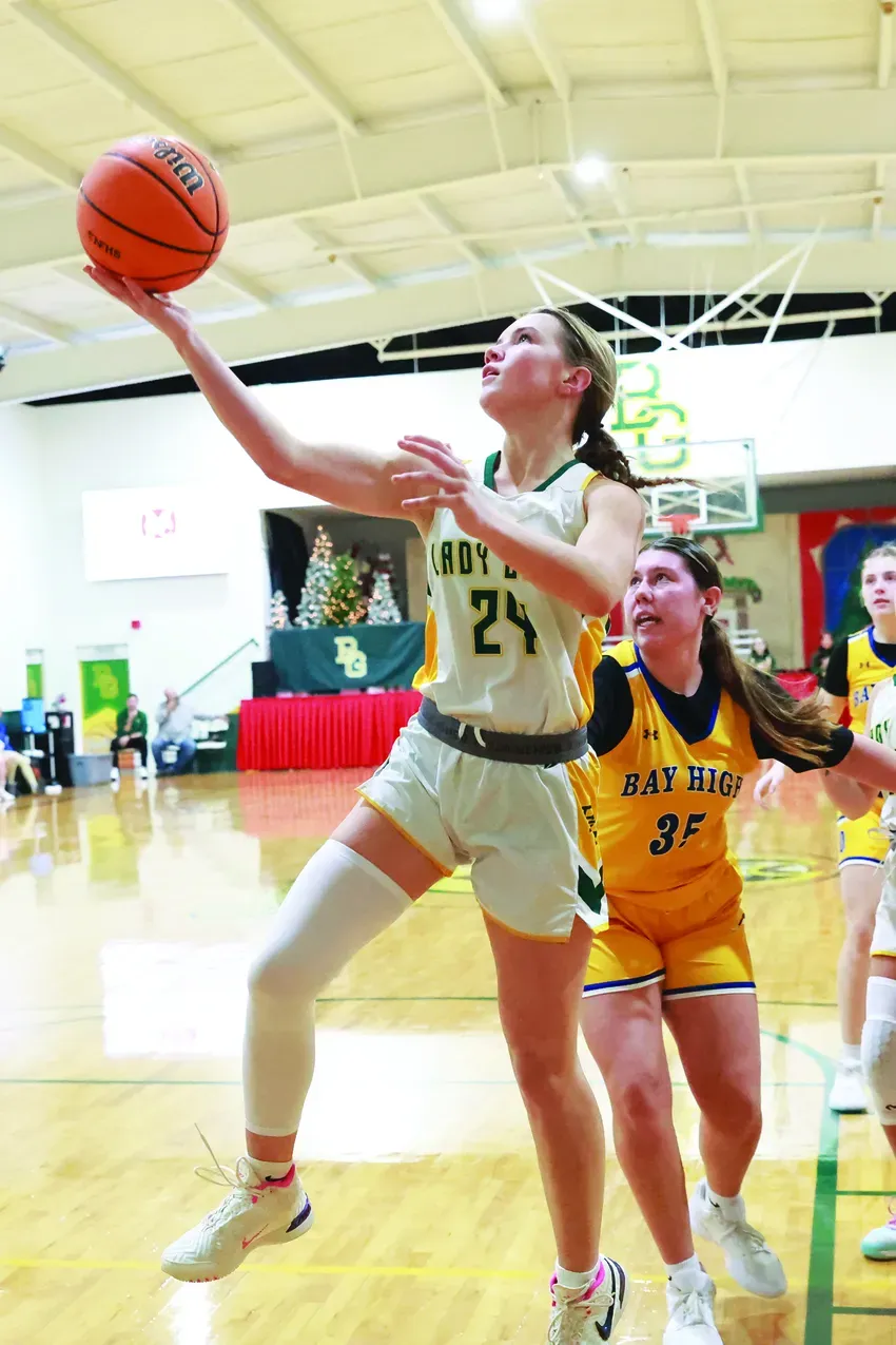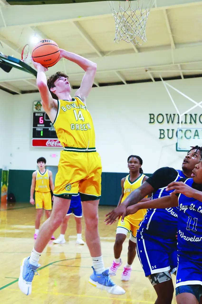 The Bowling Green boys and girls basketball teams recently took on Bay High School of Bay St. Louis MS. In the first photo, the Lady Bucs’ Jaylee Smith goes for a layup. In the second photo, Dawson Bell scores for the Bucs.