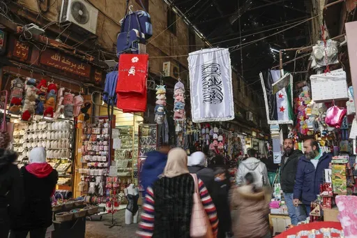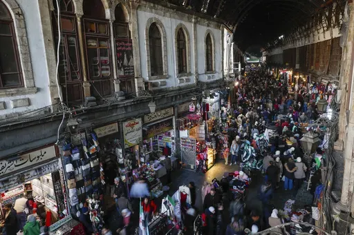 In the Syrian capital’s bustling old marketplace, crowds of people pack the narrow passageways as the country's new de facto flag is draped over the crowded stalls. Merchants say the atmosphere is pleasant and celebratory, but nobody is buying anything.