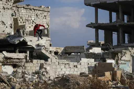 DAMASCUS, Syria (AP) — Samir al-Baghdad grabbed his pickax and walked up a wobbly set of stairs made of cinderblocks and rubble.
