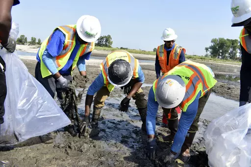 More than 66 tons (60 metric tonnes) of the black, gooey stuff have been removed from the river since the June 24 accident, officials said. Most of the spilled material — a binder for asphalt that sticks to river rocks and gets harder to handle as it warms — is expected to get left behind.