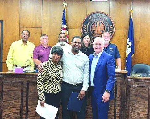 From left to right: Kathy Stuart (Sen Cassidy's Office), Rhonda Gunnell (ADAPT), Franklinton Mayor Darwin Sharp, Penny Jones (Sen Mizell's Office), Kim Wagner (Washington Parish Council), Suzi Bourne, Rep. John Wyble, Mandi Boyd (Hope Alive Ministry), Clerk of Court John Crain, Jr., Assessor Jimbo Stevenson, DA Collin Sims, Parish Ryan Seal, Judge Ellen Creel, and Sheriff Jason Smith. Photo by Danielle Folks