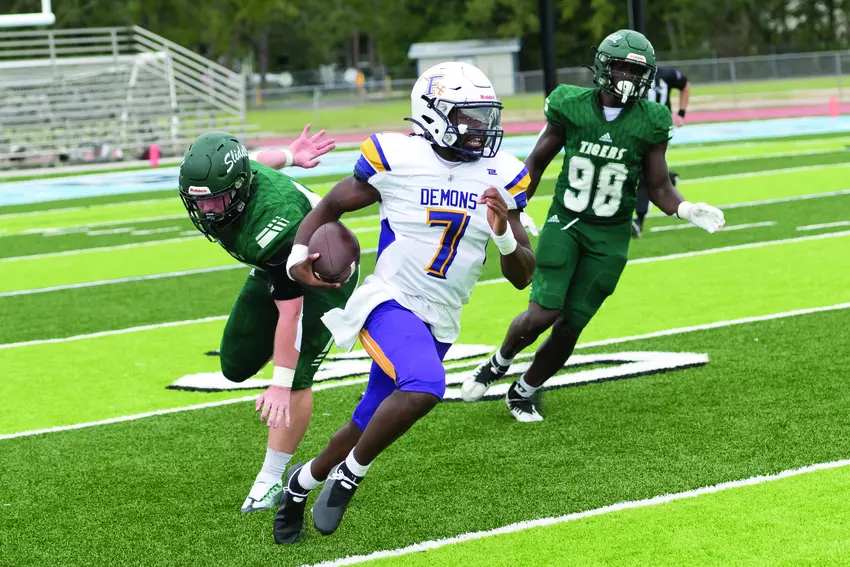 The Franklinton Junior High Falcons football team traveled to Covington to take on the St Paul's Wolves last Thursday in a game that was originally scheduled for Tuesday in Demon Stadium but moved due to poor field conditions. After a hard fought battle, the Falcons came away with a nice 16-14 victory over the Wolves.