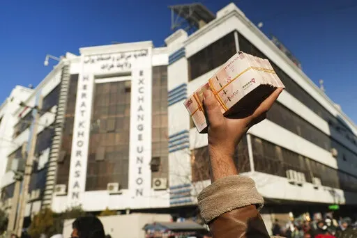 Qandi Gul holds her brother outside their home housing those displaced by war and drought near Herat, Afghanistan. Dec. 16, 2021. Gul’s father sold her into marriage without telling his wife, taking a down-payment so he could feed his family of five children. Without that money, he told her, they would all starve. He had to sacrifice one to save the rest. (AP Photo/Mstyslav Chernov)