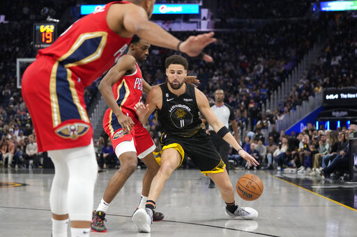 SAN FRANCISCO (AP) — Klay Thompson scored 27 points and hit the go-ahead 3-pointer, helping the Golden State Warriors wrap up a perfect homestand with a 108-99 victory over the New Orleans Pelicans on Friday night.
