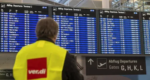 BERLIN (AP) — Thousands of flights to and from German airports were canceled Friday as workers walked out to press their demands for inflation-busting pay increases.