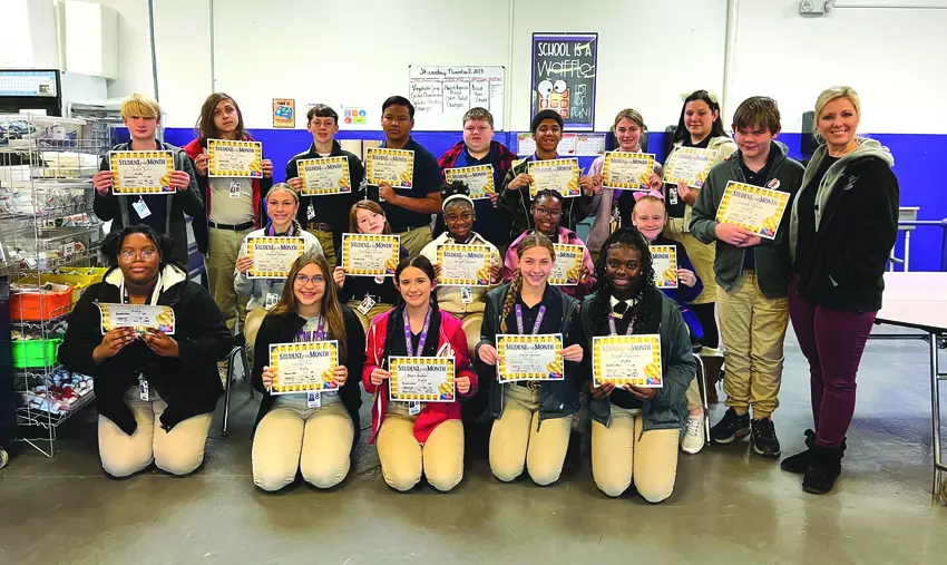Franklinton Junior High celebrated their Sept/Oct Students of the Month with a breakfast with the Principal. Congratulations to: (front row, l to r) TyLeah Holmes, Jordyn Polk, Alexis Barber, Jaylee Johnson, & Morgan Middleton. (middle row, l to r): Madison Barber, McKayla Wilson, Jaliyah Howard, Rashiya Jackson, & Rebecca Ingram.