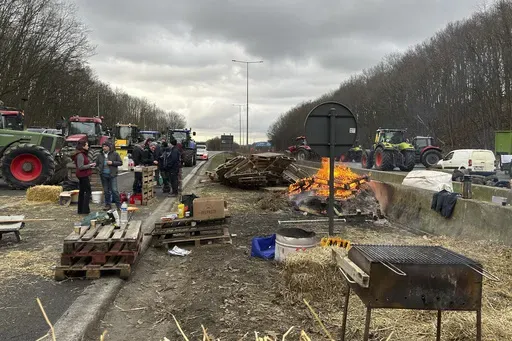 HALLE, Belgium (AP) — Farmers blocked more traffic arteries across Belgium, France and Italy on Wednesday, as they sought to disrupt trade at major ports and other economic lifelines. They also moved in on Brussels on the eve of a major European Union summit, in a sustained push for better prices for their produce and less bureaucracy in their work.