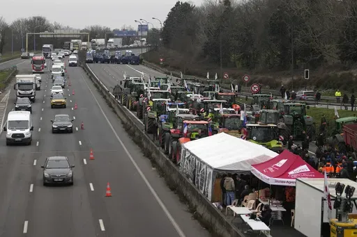 Protesters put a big banner on the A6 highway, south of the French capital, writing: “Paris, let our farmers get through.''