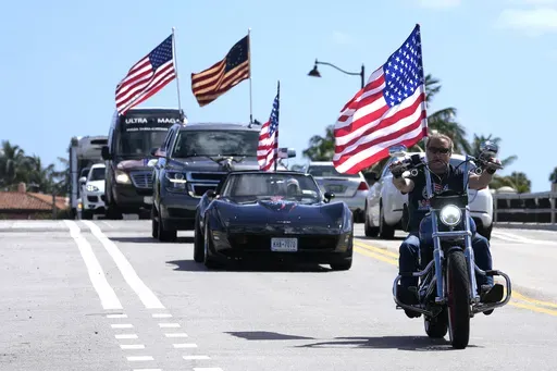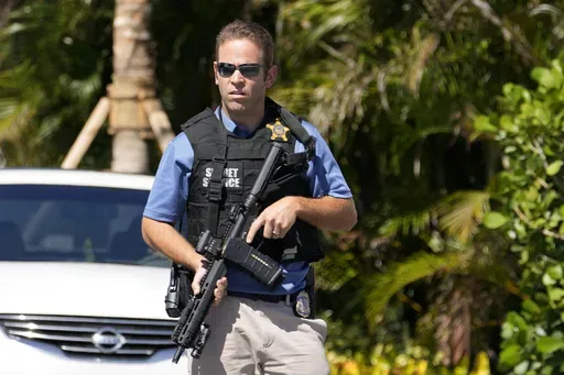 Security is heavy outside the grand jury location as well as Trump's Mar-a-Lago estate in Florida. Demonstrators for and against him wave big signs and chant.