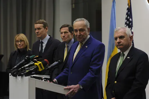“The weight of history is on his shoulders,” Schumer told reporters in Lviv on Friday after he and four other Democratic senators met Zelenskyy and other officials. “If he turns his back on history, he will regret it in future years.”