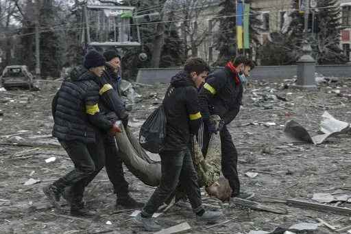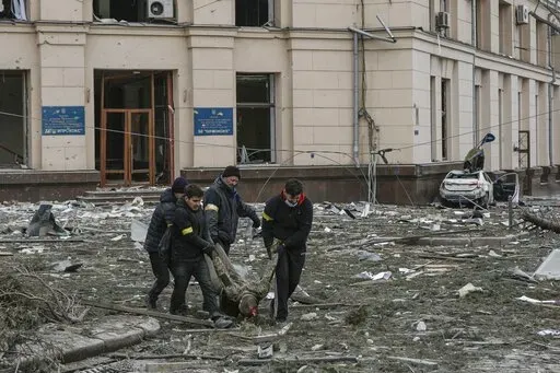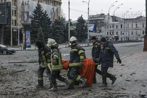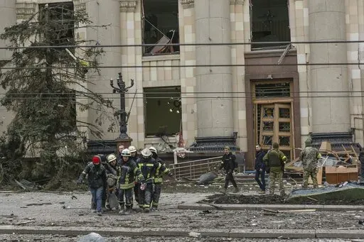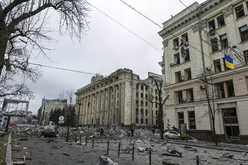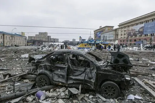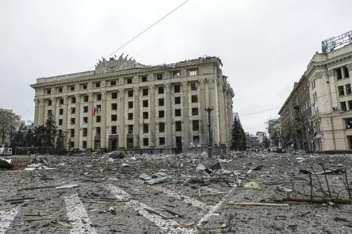 KHARKIV, Ukraine (AP) — In the dust, debris and the dead lying in Kharkiv’s central Freedom Square, Ukrainians on Tuesday saw what might become of other cities if Russia’s invasion isn’t countered in time.