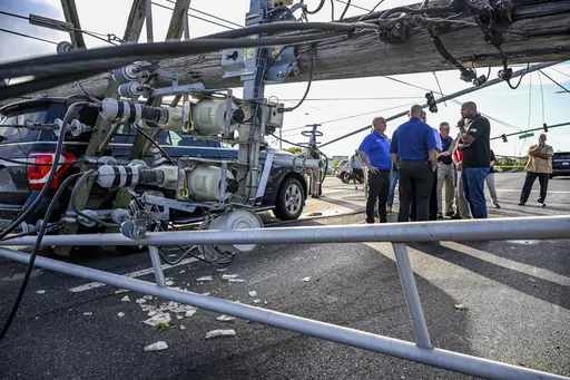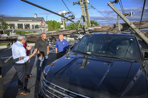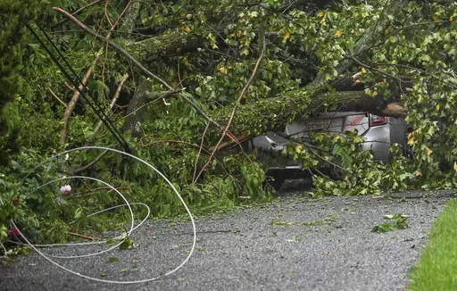 In Westminster, Maryland, about 30 miles (48 kilometers) northwest of Baltimore, dozens of vehicles were trapped by power lines that had fallen onto a highway. No injuries were reported, and utility workers turned off the electricity, allowing the 33 adults and 14 children in the vehicles to get out safely, Maryland State Police Superintendent Col. Roland Butler said at a news conference Tuesday.