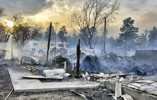 About 200 residents attended the community meeting Wednesday in Flagstaff at a middle school that's also being used as a shelter. Some lost their homes — part of the estimated 25 structures that have been lost — and were worried about finding temporary housing in a city where rental prices have exploded in recent years. One woman who was evacuated from the forest where she was camping wondered when she might be able to retrieve her things.