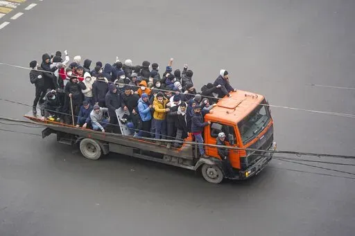 Over the course of a week, the initially peaceful gatherings grew violent. Participants in the marches told The Associated Press at the time that armed men, their faces covered and riding with cars without license plates, appeared in Almaty, the former capital, and urged them to storm government buildings, promising guns.