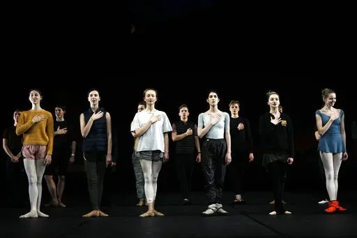 PARIS (AP) — The dancers are torn between body and mind — physically on stage in Paris but in spirit back home in Kyiv.
