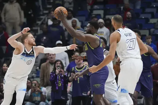 Williamson also had six rebounds, four assists, three steals and a block on Wolves center Rudy Gobert. After a few minutes on the court, he revved up the crowd with a soaring two-handed dunk of CJ McCollum's long alley-oop lob.